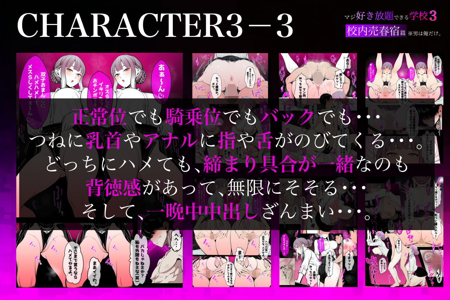 ジャンル: 辱め、制服、中出し、風俗・ソープ、男性向け、成人向け、巨乳、フェラ、3P・4P、おっぱい、双子、乳首責め