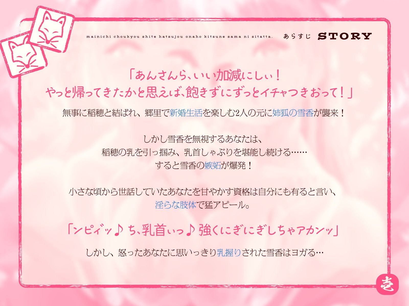 母性あふれる純情お狐様にちんぽお世話をおねだり。毎日調教して発情オナホ狐様にしたった。2匹目!(KU100マイク収録作品) あらすじ