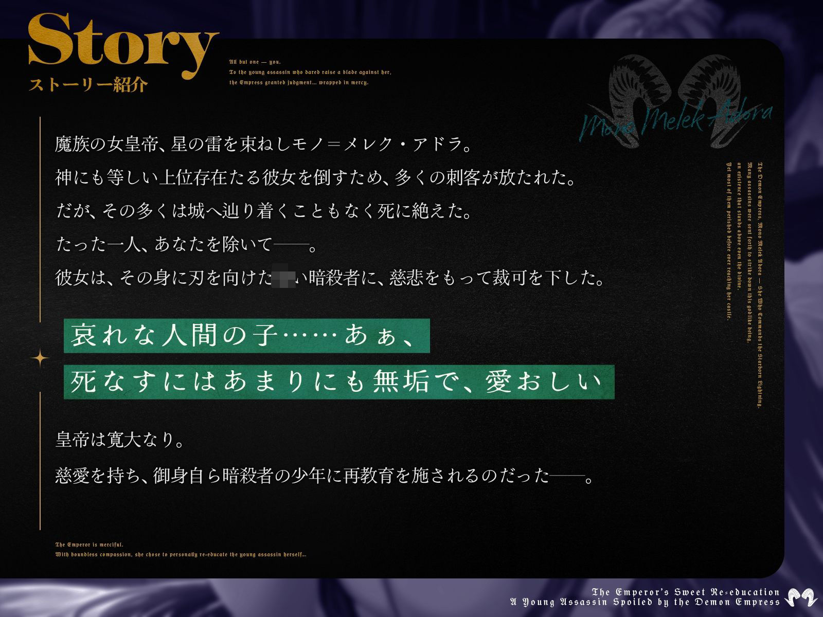 【おねショタ×甘やかし】皇帝陛下の甘美なる再教育 〜魔族の女皇帝に甘やかされる暗殺者の〇や〜【KU100収録】 あらすじ